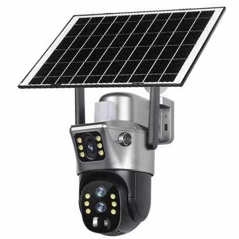 7.5W แผงโซลาร์เซลล์แบตเตอรี่8000มิลลิแอมป์ต่อชั่วโมง4MP เลนส์คู่ภายนอกแบบไร้สาย V380Pro 4G กล้องตรวจตราแซนฟิลซิม